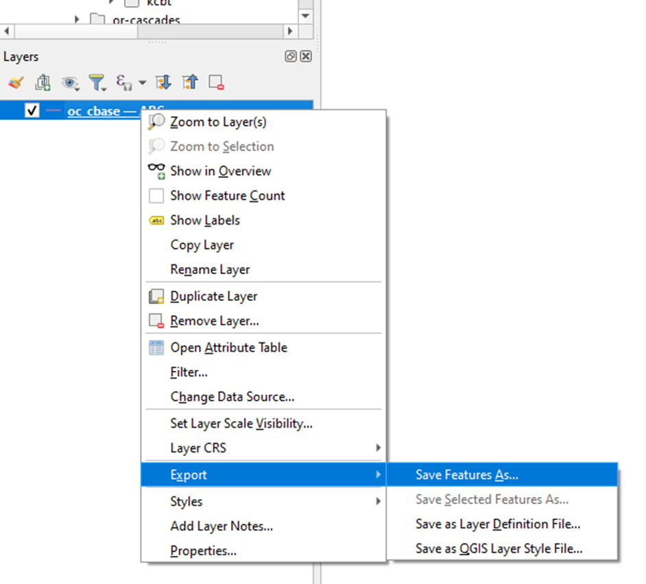 - If you need to export only selected features, you can use the "Save Selected Features As..." option.