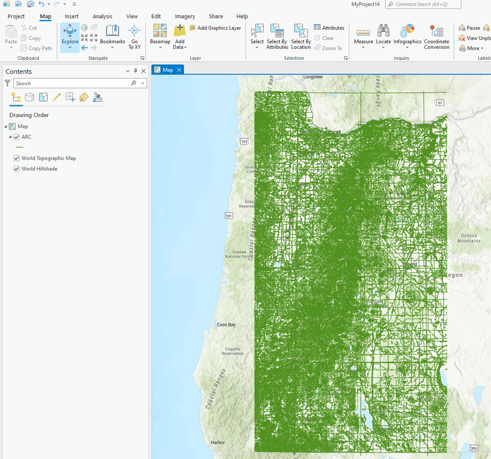 - You can now open the resulting file in your file geodatabase in ArcGIS Pro