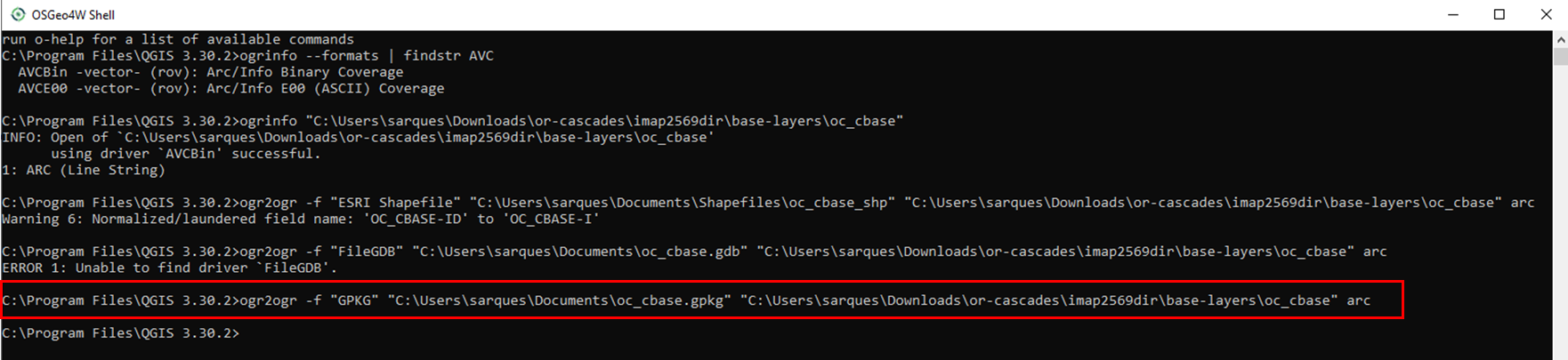 ogr2ogr -f "GPKG" "C:\Users\sarques\Documents\oc_cbase.gpkg" "C:\Users\sarques\Downloads\or-cascades\imap2569dir\base-layers\oc_cbase" arc